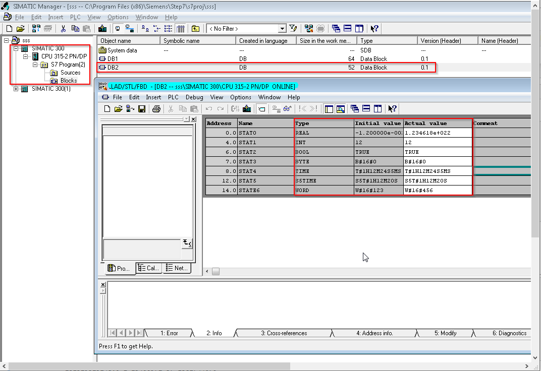 The data types BOOL, BYTE, INT, DINT, CHAR, WORD and DWORD can be handled in the same way, while the REAL data type uses the IEEE floating point representation and the S5TIME uses the BCD time representation, and so these must be converted before they can be stored in PVSR. The other data types (DATE, TOD and DT) are not relevant for measurement purposes.